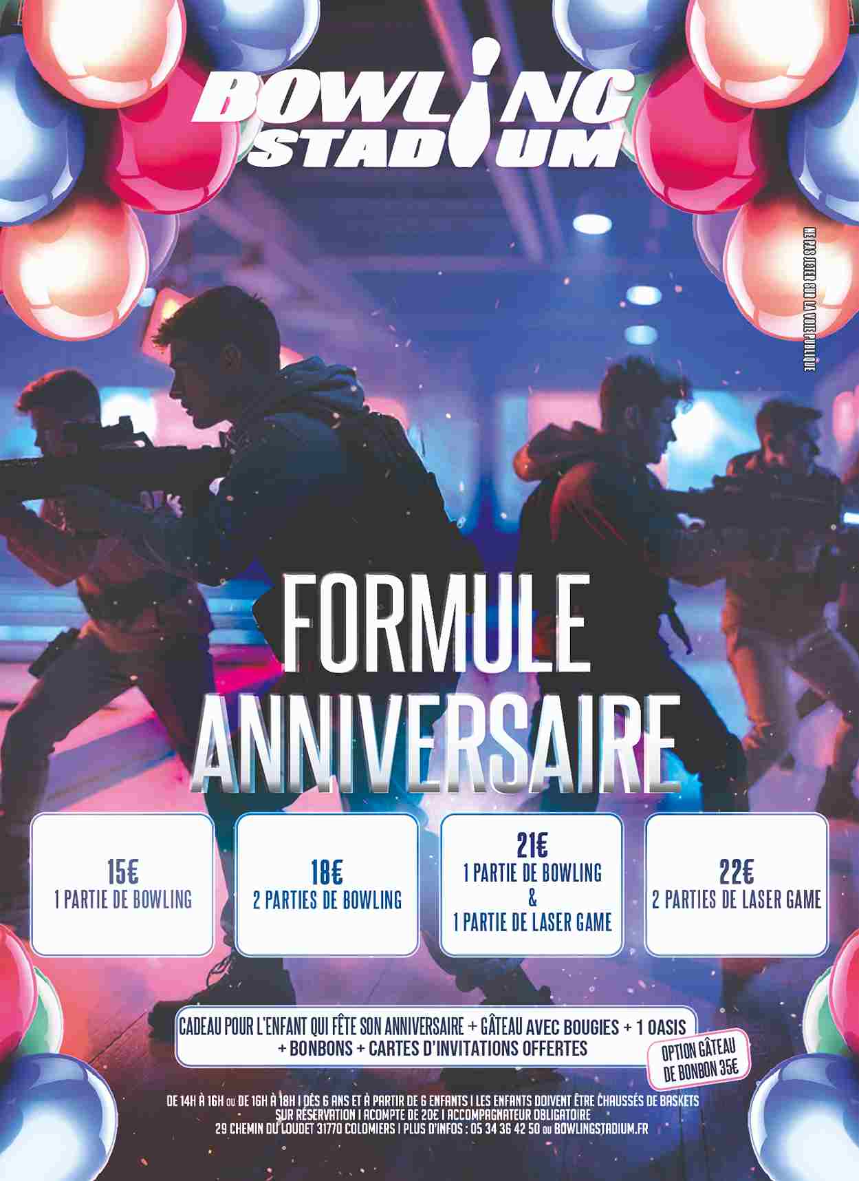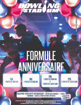 19€/enfant : 1 partie de laser game + 1 partie de bowling