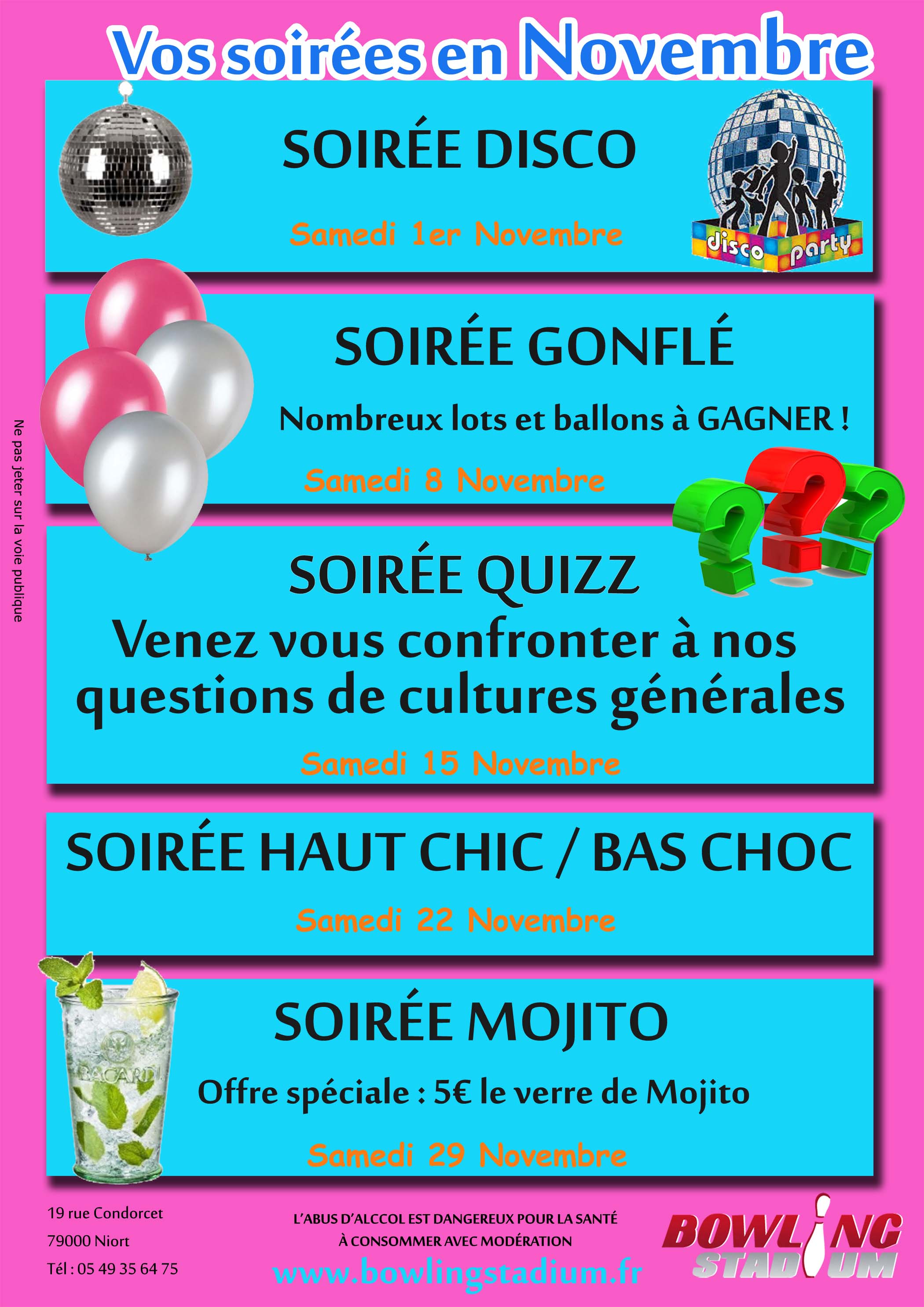 Tout le programme de vos soirées en Juin au Bowling Stadium de Niort !