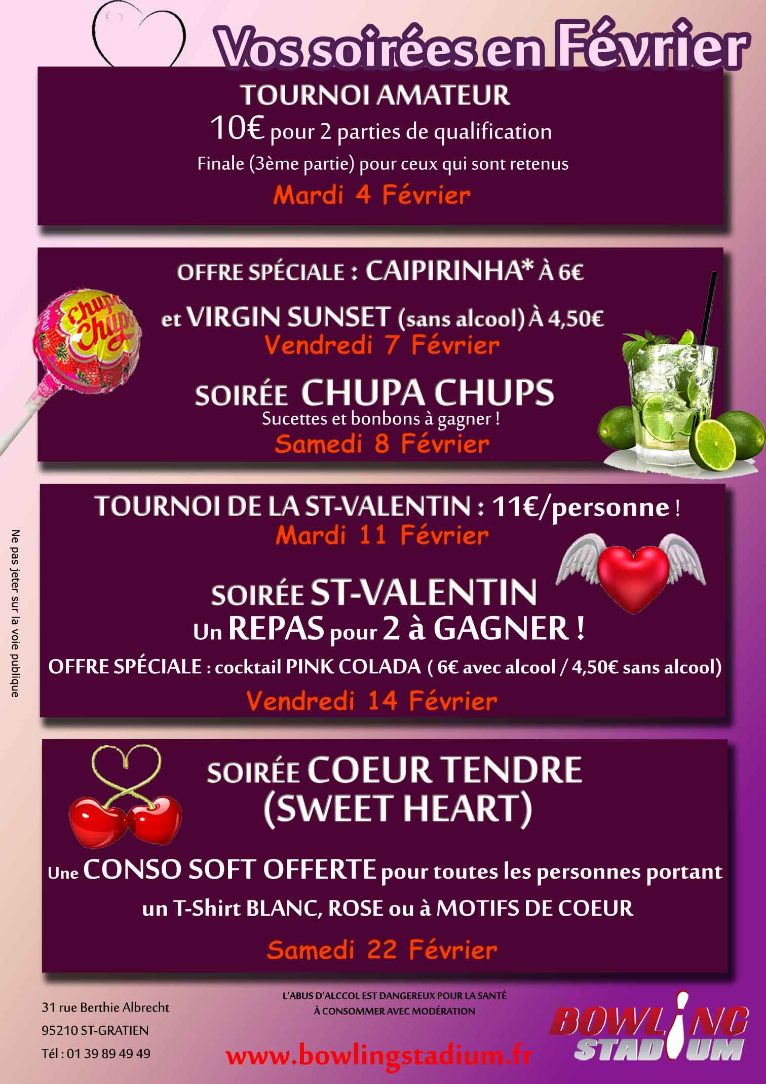 Lire la suite ?TOUT LE PROGRAMME DE VOS SOIRÉES EN FÉVRIER AU BOWLING DE ST-GRATIEN